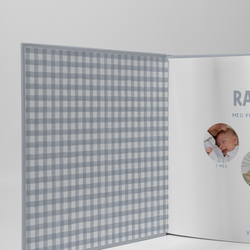 Com capa dura totalmente personalizada, você escolhe a imagem, estampa ou ilustração que vai contar a história da infância do seu pequeno. Este álbum de 30x30 cm é feito para reunir momentos únicos. São de 20 até 126 páginas de papel fotográfico premium 440g, com fotos impressas diretamente nas folhas, registrando desde o nascimento até as fases mais marcantes da infância.